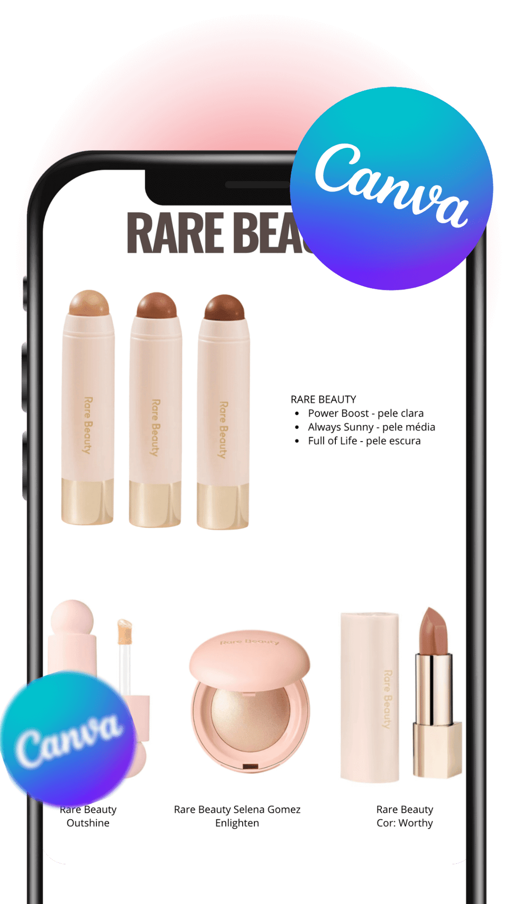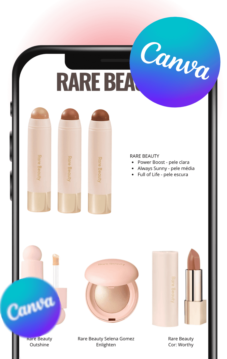 1,000+ makeup products organized by color palette — ready to customize and send to your clients.